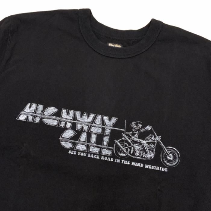 道に呼ばれて走る=HIGHWAY CALLというサブテーマを大きくフューチャーし、DAVID MANNの知る人ぞ知るアートピースに准えて描くオーセンティックなバイカーTEE。走り続けていくバイカーの車輪の下には「下道で、風の中で会おう」という、大切な物を見失うことなく、未来へ向かい走って行こうという直向きで前向きなバイブを放つ。