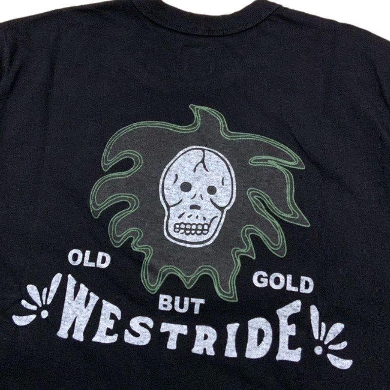 WESTRIDEを象徴するアイコンの一つとして絶大な人気を誇るGHOST。代表BIG BOSSが着用するデニムカッツの限定チェーン刺繍のバックデザインをプリントに落とし込んで展開する話題の新作。フロントにはGOOD TIME、バックにはOLD BUT GOLDのブランド普遍のテーマフレーズが配される。