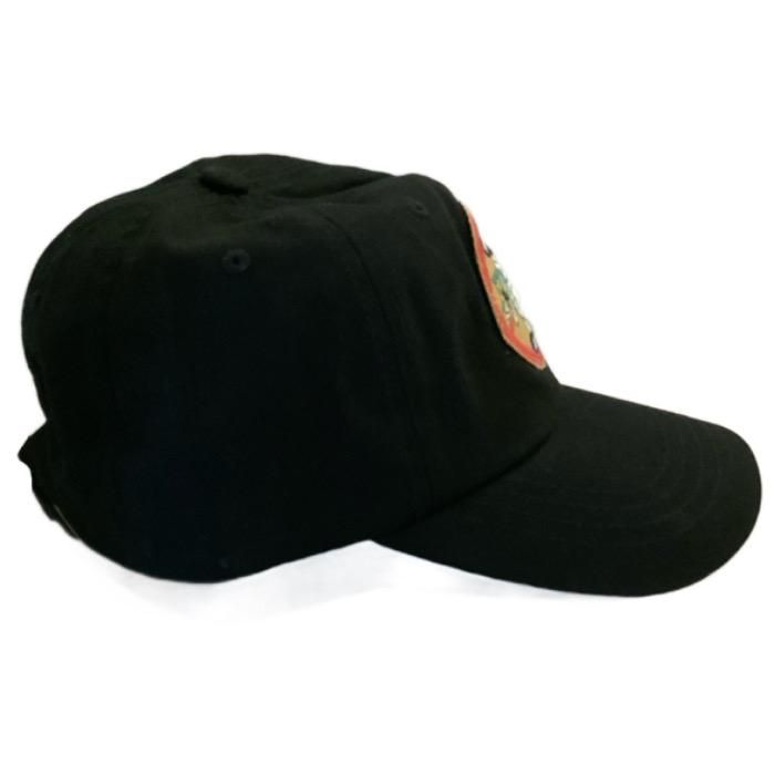 インポーテッドプロダクツのコットンキャップにオ リジナルパッチを取り付けている。キャップは日 本人にマッチするクラウンフォルムのフリーサ イズ。