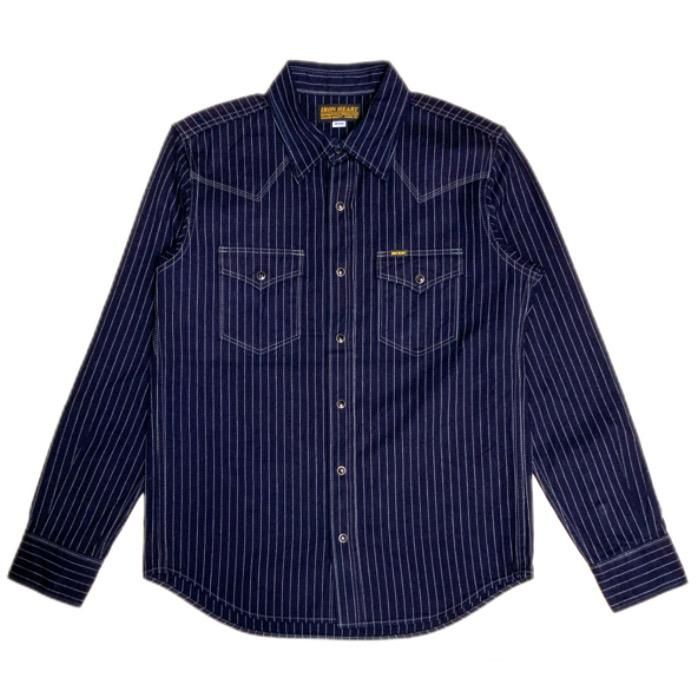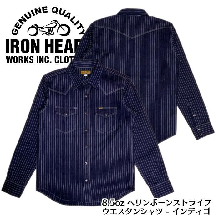【IRON HEART / アイアンハート】 IHSH-424 /8.5オンスヘリンボーンストライプウェスタンシャツ - インディゴ IHSH-424
