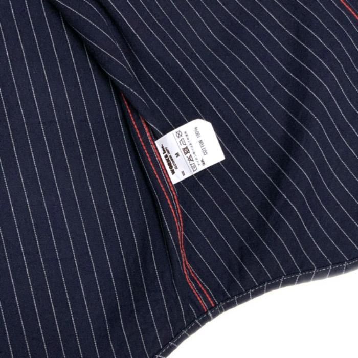 軽量でありながら丈夫な8オンスヘリンボーン生地は、織りの中に織り込まれたタイトな縦方向のチョークストライプを特徴としており、ワバッシュやヒッコリーストライプといった作業着生地に似たクラシックな美学を生み出しています。