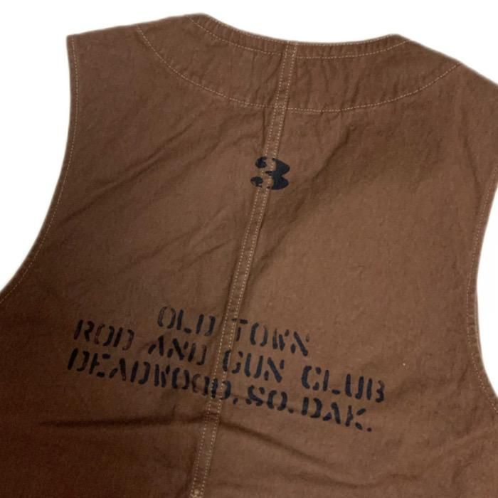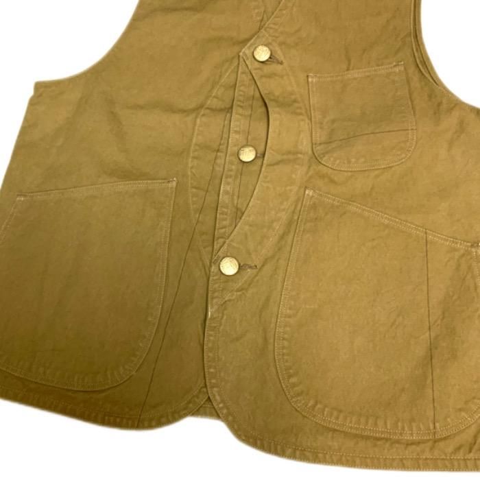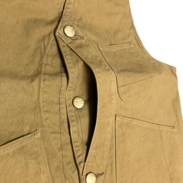 本来はハンター向けに作られたベストはその有用性にアウトドアワー カーからも支持を得て現在でもフォレストレンジャーなどでも引き続き 着用されている。オリジナルダック地のボディーにグレベスモールド入 りメタルボタンの組み合わせ。