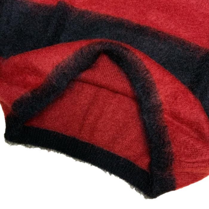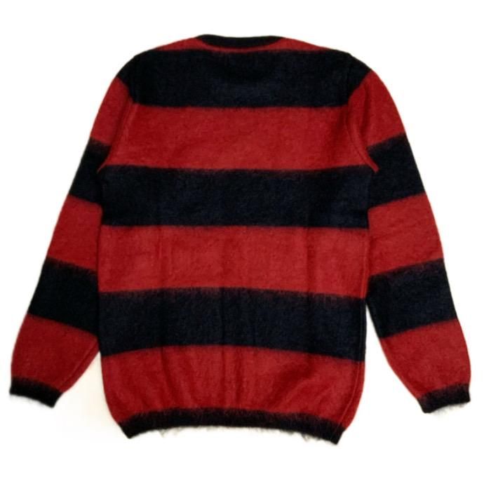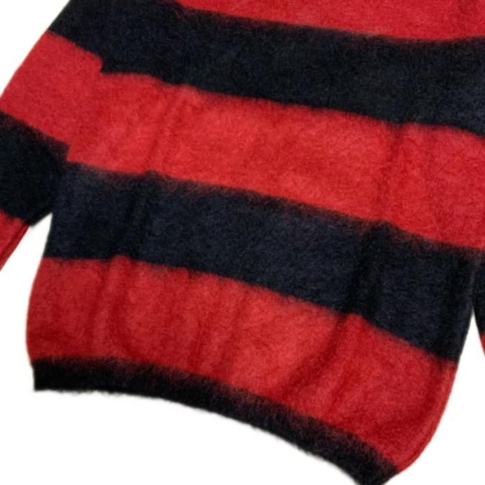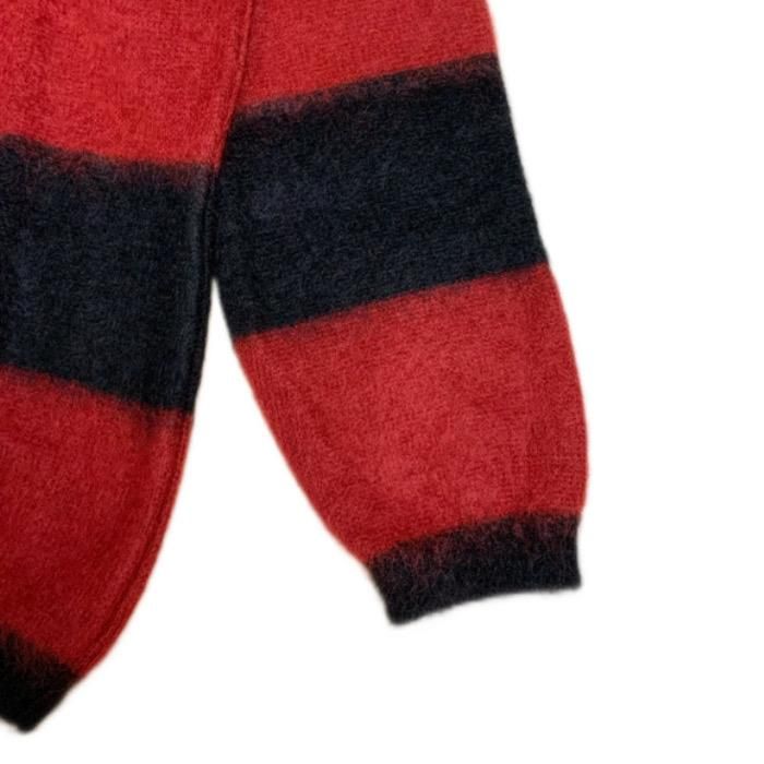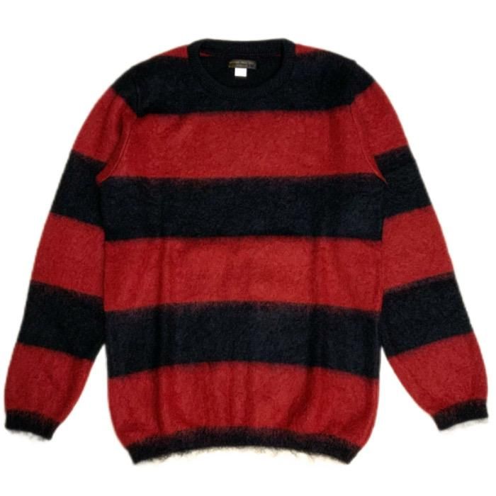70’Sテイストを色濃く映し出すモヘアニットのボーダー・セーターは素晴らしい柔らかさと保温力をもつ希少なキッド・モヘアを40%も使用した上でアクリルをプラスしています。