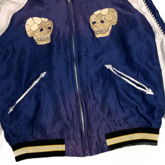 ヴィンテージでは現存する数が極めて少なく、市場では耳を疑う金額で取引されている「髑髏柄」をエイジングモデルでリリース。髑髏柄にはカラフルな色糸を駆使した作品も存在するが、1950 年代中期の本作は白を基調とした淡い色糸で全体がまとめられており、褪色したネイビーのボディとのコントラストが際立つ洗練された仕上がり。
