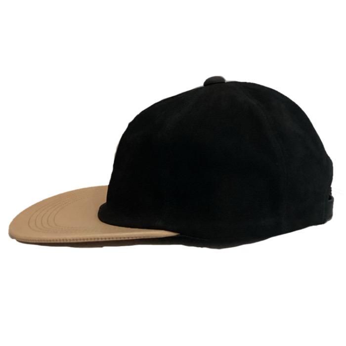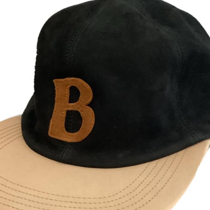 クラウン部分にはヌバック、ブリムの表裏にはタンニンなめしの無染色の馬革(ヌメ革)を使用し、フロントにあしらったブランド頭文字「B」のロゴにはディアスエードを採用したベースボールキャップ。