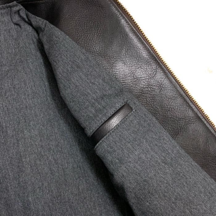 カラーは茶芯のブラックですが、染料仕上げのため、顔料のように剥がれるような経年変化は起こりません。時間をかけてじっくりと育てていただきたい一着です。