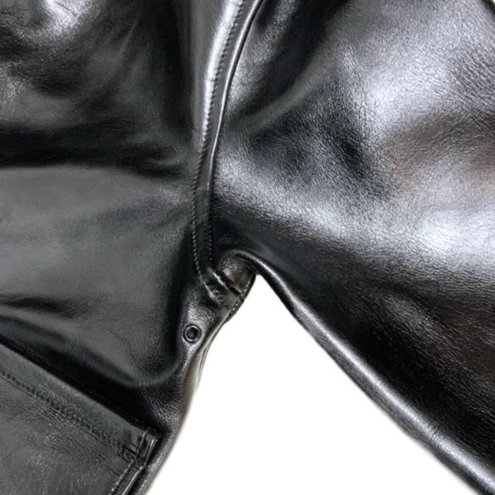 資材をそれぞれブラックの色で指示してもそれぞれ素材によって染まり方が異なり、それらを一着のジャケットに構成すると微妙に色の差が表れ、フライトジャケットがどれだけの異素材で構成されているのかが明確になる。