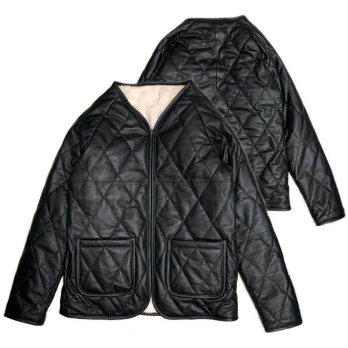 薄手で柔らかなシープスキンをキルティング仕様にしたレザー面と