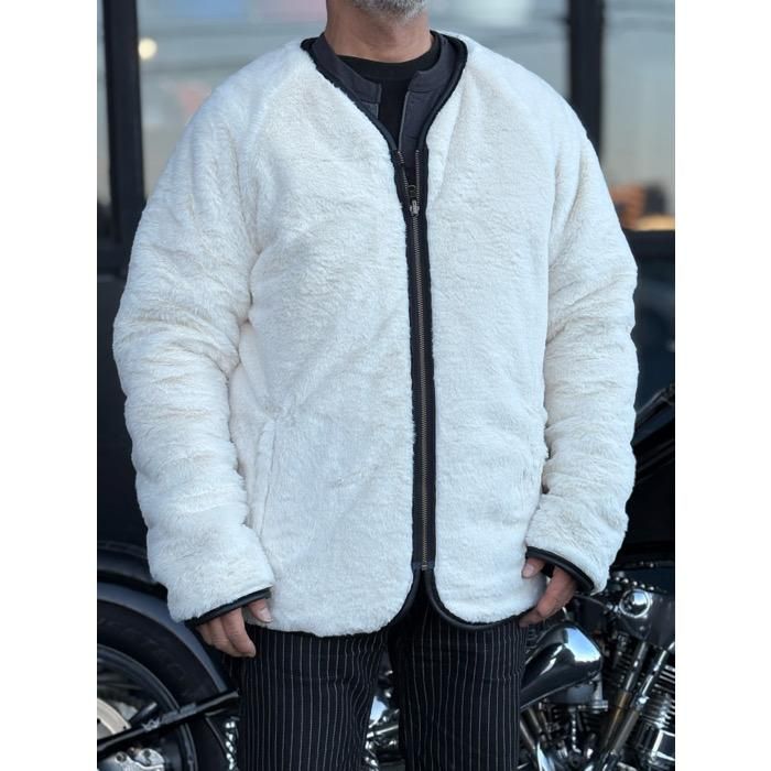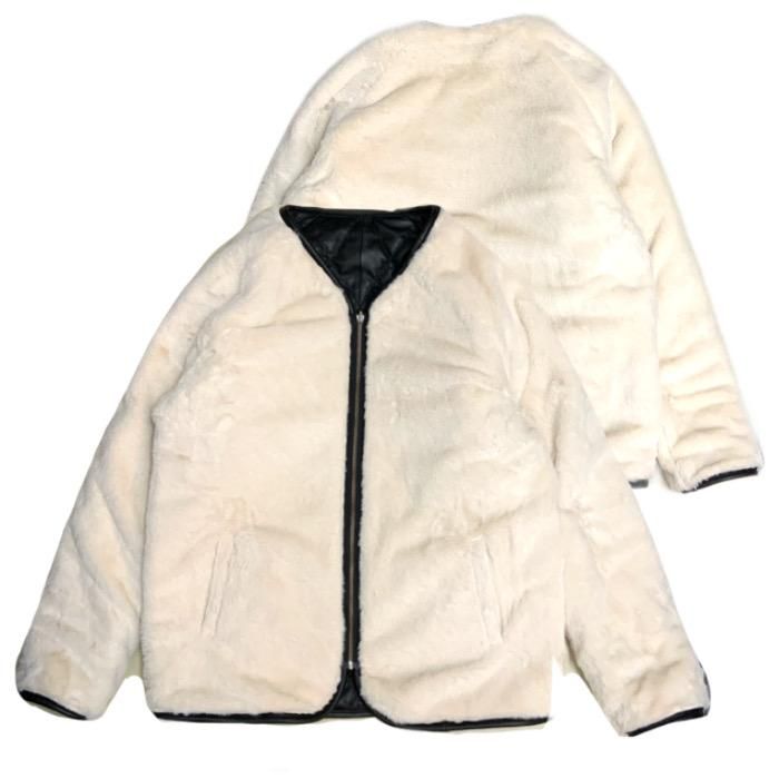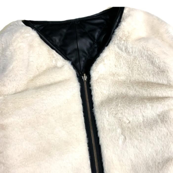 肌触りのいいアイボリーカラーのフェイクファー面をリバーシブルで楽しめる
