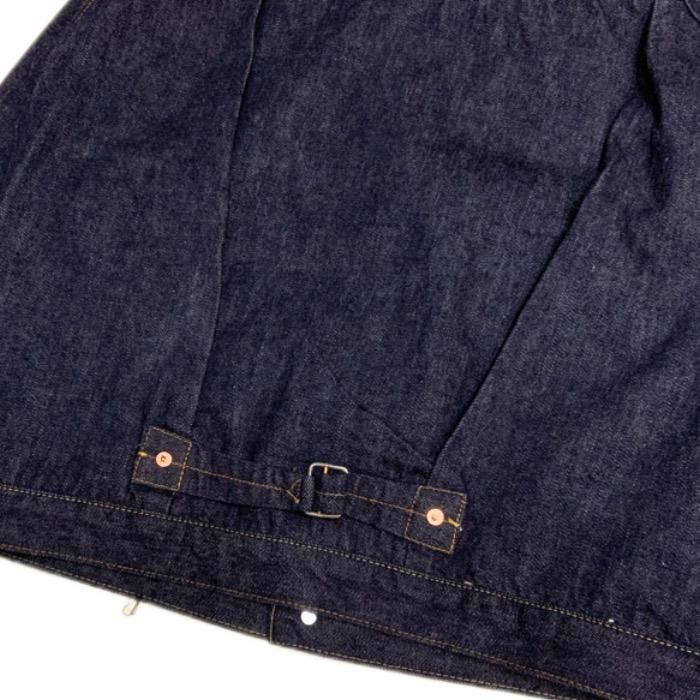 経糸7番×緯糸7番の未熟な紡績のムラ糸を使用した13.5oz.セルビッジデニムに、戦前らしいオレンジがメインのステッチワークが映えます。