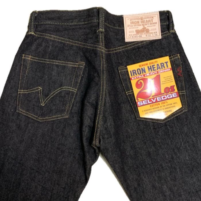 IRONHEARTオリジナルの21ozセルビッチデニムを使い、2003年の発売開始以来、日本で世界でヘビーオンスジーンズのブームを生んだアイアンハートを代表するジーンズ。